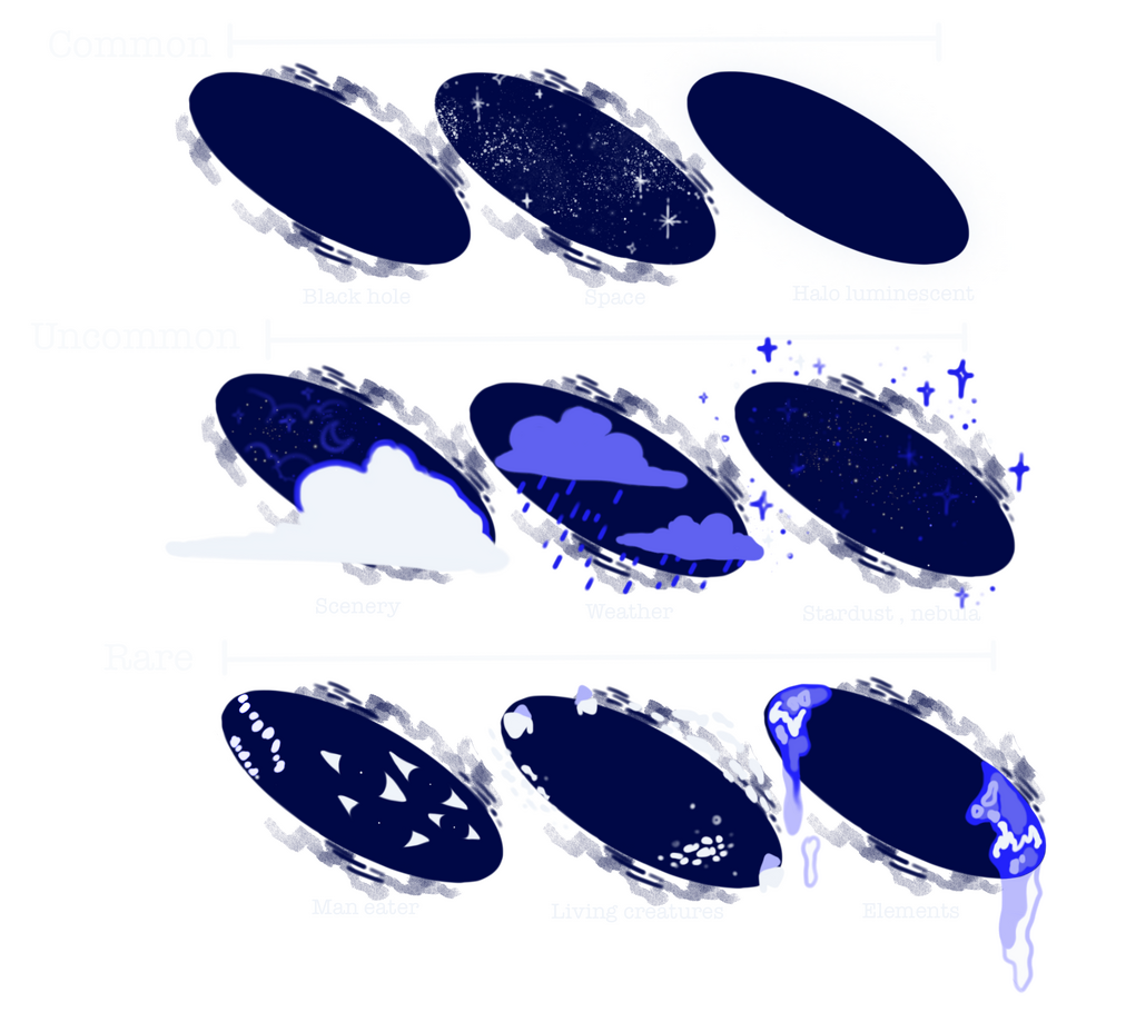 The ring on their heads is a tiny black hole that will stay with them for the rest of their lives. The size of the ring depends on the size of each cosmolyst. Sized from 20-40 cm or more, a small black hole can create a strong gravitational force in a very short time and then disappear. But don't worry, Cosmolyst can always recreate it. Black holes will not harm their surroundings as long as the Cosmolyst is worn on their heads. But when danger strikes, Cosmolyst will pull the black hole on his head to cover themself and runs away. But when they use a black hole as a cover, It takes time to repair when they utilize a black hole as a cover, though. As a result, they are vulnerable to assault.